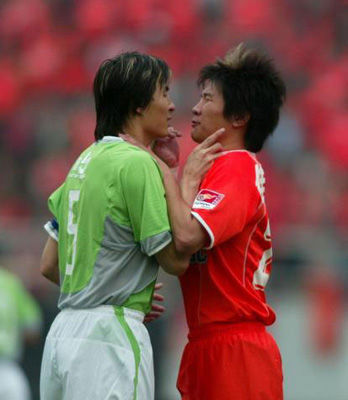 圖:中超賽場(chǎng)山東魯能1比1言和天津康師傅