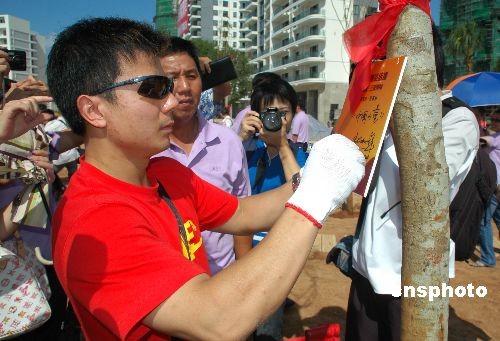 圖:14位奧運(yùn)冠軍在三亞種植“冠軍林”