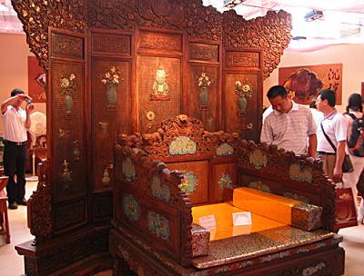 記者在采訪參展企業(yè)時,有部分企業(yè)負責(zé)人透露,自去年金融危機以來,由于房地產(chǎn)行業(yè)一度低迷,紅木家具市場也隨之暗淡。所幸今年樓市回暖,產(chǎn)品也開始旺銷。波記古典家具的負責(zé)人告訴記者,如果把紅木家具只定位為一般的家具,其銷量必然會受房地產(chǎn)業(yè)的制約。若能增加產(chǎn)品的文化內(nèi)涵,把家具變?yōu)樗囆g(shù)收藏品,這將有很大的市場空間。
