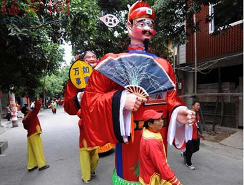 從聚寶街路角的黃帝宮出發(fā),五六百人的出巡隊伍沿著橫街、青龍宮、斗門頭、車橋頭、水上派出所、聚寶新城等線路一路走來,最后經(jīng)中山南路、天后宮、聚寶街等路線,再回到黃帝宮。一路走來,隊伍吹拉彈唱,富有閩南特色的有驢子探親、立高人、高蹺表演等,連經(jīng)過的小車司機也停下觀看。另外,隊伍里還有11匹馬,模仿大禹坐馬車出行的陣容。