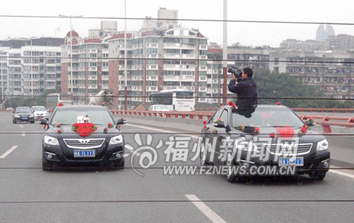 元旦假期,閩江公園、金牛山公園、溫泉公園等景點(diǎn),吸引不少新人冒雨前來(lái)拍婚紗照。2日,在溫泉公園拍照的某影樓攝影師劉師傅告訴記者,從1日開始至3日,已有52對(duì)新人向影樓預(yù)訂拍婚紗照,此間業(yè)務(wù)并不亞于國(guó)慶。