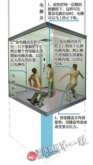 1、保持鎮(zhèn)定,電梯井有防墜安全裝置,會牢牢夾住電梯兩旁的鋼軌,電梯一般不會下墜。