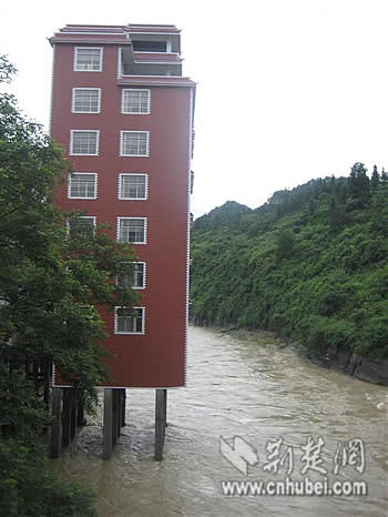 7月13日,有網(wǎng)友向荊楚網(wǎng)報料臺反映,恩施州鶴峰縣鐵爐鄉(xiāng)有人把房子建到了河道中,眼下正是主汛期,看著十分揪心。從該網(wǎng)友發(fā)來的照片上可以看到,一幢7層的樓房直接建在了河道當(dāng)中,與周圍兩棟4層白色建筑形成了鮮明的對比,顯得十分突兀。照片里,湍急的河水急速地沖刷著這棟違建房的支柱,水流幾乎沖到了房子的底板上。