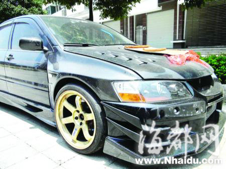 阿超指著停在他旁邊的一輛黑色的EVO跑車說,這輛車才是他的目標(biāo),可是恐怕很難跟得上,現(xiàn)在只能用一些其他車上拆下的舊件改裝。據(jù)他介紹,那輛黑色的EVO跑車屬于福州某地產(chǎn)商公子的,家里豪車無數(shù),可這位公子卻鐘情于改車玩車,在這輛EVO跑車上已投入了100多萬元,現(xiàn)在正準(zhǔn)備將車上的坐椅等物拆除,加裝防滾架,對發(fā)動(dòng)機(jī)再次升級后送往北京,參加在那里舉行的賽車。