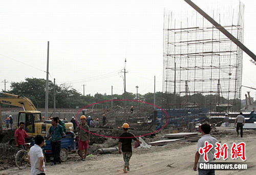 在施工現(xiàn)場,記者看到,有一座鋼筋籠佇立在工地上,目測大概有10米左右高,“倒塌的那座‘鋼筋籠’比這座還要高半米左右,當(dāng)時(shí)有7-8個(gè)人正在上面扎鋼筋。”工地上的工人告訴記者,不知道為什么,鋼筋籠就倒塌了。但也有工友表示,因?yàn)殇摻罨\的鋼筋質(zhì)量不合格,工人們當(dāng)時(shí)正在拆除。