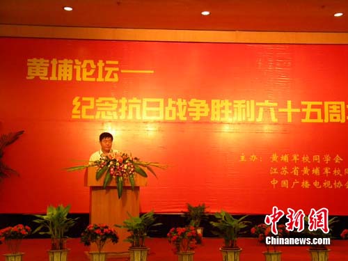 中新網(wǎng)南京8月24日電 (記者 唐娟)由黃埔軍校同學(xué)會、江蘇省黃埔軍校同學(xué)會、中國廣播電視協(xié)會聯(lián)合主辦的紀念抗日戰(zhàn)爭勝利65周年黃埔論壇,于2010年8月24日上午在南京舉行。來自海峽兩岸及海外的黃埔同學(xué)及親友,有關(guān)專家學(xué)者,相關(guān)單位領(lǐng)導(dǎo)等150余人參加了論壇。