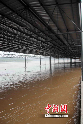 從22日下午開始,長(zhǎng)江重慶段水位持續(xù)上漲,逐漸淹沒(méi)了重慶菜園壩水果市場(chǎng)的部分?jǐn)偽缓蛡}(cāng)庫(kù),當(dāng)日,不少商家開始將西瓜搶運(yùn)到安全地帶。記者今天在該市場(chǎng)看到,上漲的江水淹沒(méi)了約八、九十家商家的攤位,不少沿江而下的漂浮物堆積在攤位附近。