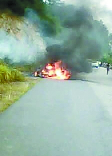 當(dāng)車隊開到余姚梁弄的一條鄉(xiāng)鎮(zhèn)公路上時,其中一輛法拉利跑車車后的發(fā)動機突然冒出了大量濃煙。隨后整個車子開始熊熊燃燒,不到半個小時就燒得只剩下個底盤框架,幸虧發(fā)現(xiàn)及時,沒有人員傷亡。