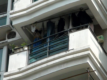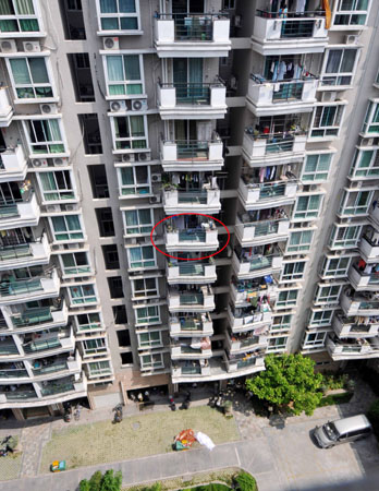 住在小區(qū)2號樓的老王目擊了整個過程!八敃r半蹲著,雙手緊抓著陽臺護欄,雙腳踩在陽臺外側的邊沿上!崩贤跻贿吥7履凶赢敃r的姿勢,一邊說,“他嘴里一直在喊救命,小區(qū)門口的保安聽到后趕緊往那邊跑,我也趕過去想幫助救人。保安剛到樓下,那小伙子的左腳突然滑下來,他往上蹬了幾下,沒蹬上去,右腳也跟著滑了下來,僅靠雙手抓住護欄。沒幾秒鐘,人就摔了下來!