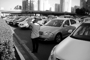 昨日17時30分許,交警在多次提醒無效的情況下,開始張貼罰單,占道近4個多小時的車輛陸續(xù)離開。