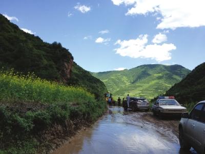 泥石流沖毀路面 □晚報特派記者牛小亞攝