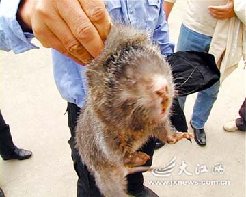 22日凌晨,南昌市衛(wèi)東花園1期的保安室闖進(jìn)來一位“稀客”,它嘴巴像豬、牙齒像兔、爪子像老鼠,全身灰黑色長皮毛,身長約30厘米。這樣一個(gè)小動(dòng)物頓時(shí)就成為了小區(qū)里的“小明星”,可駐足觀看的居民都叫不上它的名字。
