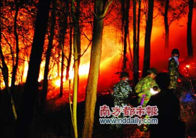 昨日凌晨0時(shí)許,廣州白云區(qū)太和鎮(zhèn)東坑塘山與京珠高速接駁處山頭陷入火海,火勢一度蔓延至山腳,威脅到村莊和京珠高速。接警后,市森林防火指揮部帶領(lǐng)5支森林防火大隊(duì),在市消防、太和鎮(zhèn)消防的協(xié)助下,采用高壓水車與水泵串連的先進(jìn)技術(shù),實(shí)施夜間遠(yuǎn)程滅火,40分鐘內(nèi)控制火勢,確保了山腳眾多村莊的安全和京珠高速的正常通車。白云警方在現(xiàn)場抓獲一名疑患精神類疾病的男子,后證實(shí)山火正是因其無意縱火而致,該男子目前已被拘留。
