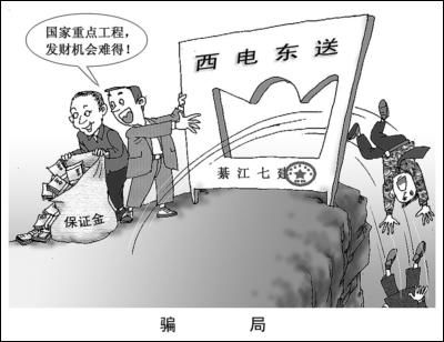 重慶市綦江縣兩個(gè)有犯罪前科、只有小學(xué)和初中文化程度的人,合伙編造了一個(gè)彌天大謊:要搞一個(gè)和北京2008年奧運(yùn)會配套的國家重點(diǎn)工程——“西電東送”。就是這樣一個(gè)彌天大謊,竟然在綦江縣13個(gè)鄉(xiāng)鎮(zhèn)大行其道,眾多的老板、農(nóng)民上當(dāng)受騙,造成損失共計(jì)800余萬元。本報(bào)(檢察日報(bào))2007年5月9日對此案作過報(bào)道后,日前,最高人民檢察院影視中心《法治中國·中國法治時(shí)空》電視節(jié)目組記者又赴綦江深入采訪辦案檢察官及涉案人員,調(diào)查該案發(fā)生的深層次原因。結(jié)果發(fā)現(xiàn):當(dāng)?shù)匾患覈衅髽I(yè)、一名政府機(jī)關(guān)干部,還有一些鄉(xiāng)鎮(zhèn)、村干部,不僅是受騙者,而且在這場騙局中還充當(dāng)了極不光彩的角色——受利益驅(qū)動(dòng),在無意中為彌天大謊披上了華裝。