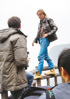 本報(bào)張家界專電 曾經(jīng)成功徒手攀越美國紐約帝國大廈、法國埃菲爾鐵塔的法國“蜘蛛人”阿蘭·羅伯特,昨日現(xiàn)身湖南省張家界天門洞下。若無意外,今天下午,“蜘蛛人”將在位于天門洞左側(cè)、垂直高度接近200米的絕壁上演“空中芭蕾”。本報(bào)作為我市唯一受邀媒體前往見證此次壯舉。