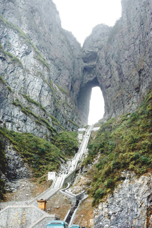 按計(jì)劃,羅伯特本次攀爬路線,位于海拔1300多米的張家界天門洞左側(cè)巖壁之上,攀爬垂直高度約200米,部分巖壁傾斜度大于90度。對一般攀巖高手,即使帶上巖釘、繩索等保護(hù)裝備,如此絕壁也很難征服。但羅伯特一如既往,除了一雙攀巖鞋,什么都不帶。