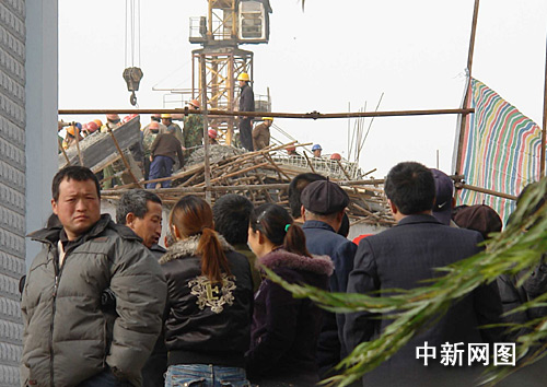 從周邊的居民處了解到,該車站由浙江的一家工程公司負責承建,建成后將把現(xiàn)在的侯馬西站搬遷過來,以成為侯馬北方輕工城的配套設(shè)施。昨天下午三時政府才在這里剪彩搞了典禮活動,活動結(jié)束后施工方就開始給二樓樓頂灌漿,到今天凌晨一時左右,工人正在作業(yè),就出事了。