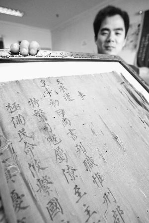 據(jù)史先生介紹,他老家在河南商丘,去年,祖母鄭重地將這道傳了500余年的圣旨交給了他,“但我一直不知道是真是假,想請(qǐng)專家?guī)兔﹁b定!(馬晶晶)