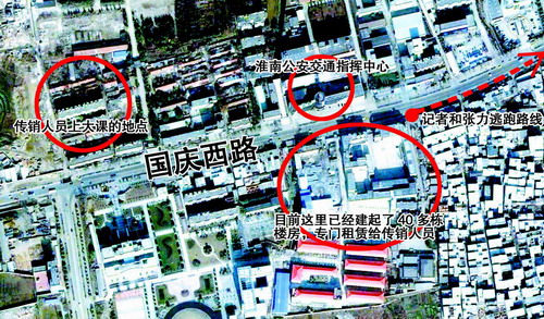 張力簡單地介紹了情況:一個(gè)龐大的非法傳銷組織,此地大約40棟房屋內(nèi)租住有近5000人,打著“天津天獅生物發(fā)展公司”的旗號,推銷的是一種賺錢的方法,新人入會交納2800元,采用非法傳銷通用的五級晉升制度。新人剛來無論干什么都會有人陪同,寸步不離,包括上廁所和洗澡。