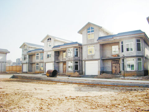 藍(lán)田縣國(guó)土資源局新家屬院位于該縣黃金地段的北環(huán)路邊、汽車(chē)客運(yùn)站附近。群眾反映的9棟住宅就建在該局的新家屬院里。記者來(lái)到這里時(shí),兩棟家屬樓和9棟“低矮建筑”都已完工,已經(jīng)進(jìn)入裝修階段。家屬區(qū)門(mén)房墻上張貼的一份蓋有“藍(lán)田縣國(guó)土資源局物業(yè)辦”印章的《通知》顯示,這個(gè)小區(qū)11月12日給住戶(hù)發(fā)了鑰匙,11月17日試水。記者看到,9棟“低矮建筑”都是青灰色仿古屋頂,同一品牌的防盜門(mén),一層都建有車(chē)庫(kù),不僅外觀完全一致,面積大小也完全相同。一位正在裝修的該縣國(guó)土局工作人員的家屬告訴記者,兩棟單元樓每戶(hù)130多平方米,是集資建房;那些“別墅”是給局領(lǐng)導(dǎo)修建的住房,是3層建筑,三四百平方米。有知情人說(shuō),國(guó)土局里并沒(méi)有9名局級(jí)干部,多余的“別墅”是給縣上領(lǐng)導(dǎo)修建的。私人要蓋這樣的房屋費(fèi)用會(huì)低一點(diǎn),但至少也要花30多萬(wàn)元。