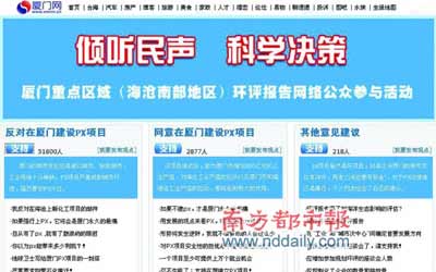 12月8日,廈門網(wǎng)忽然開(kāi)放了一個(gè)投票平臺(tái),名為“環(huán)評(píng)報(bào)告網(wǎng)絡(luò)公眾參與活動(dòng)”,里面明確列出支持或反對(duì)PX項(xiàng)目建設(shè)的選項(xiàng),還可以進(jìn)入一個(gè)專門的論壇發(fā)表自己的看法。