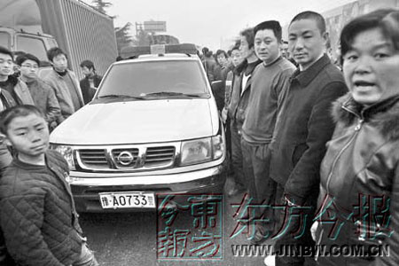 昨天下午4點(diǎn)半左右,記者趕到107國道新鄭市龍湖鎮(zhèn)路段龍湖賓館門前看到,上百名群眾情緒激動(dòng),圍著一輛車牌號(hào)為豫A0733警的警車。