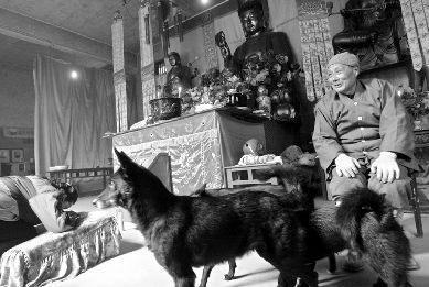 妙行法師的一位徒弟悄悄告訴記者,法師害怕天冷凍著狗,晚上經(jīng)常讓狗到他床上睡,可狗身上會有虱子,法師嘴里不說,但他每晚都會沐浴,寺里沒有暖氣,真害怕他著涼感冒了。