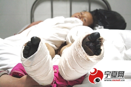 因家境貧寒,母親帶著兒子出門(mén)討飯,因迷路在寒風(fēng)刺骨的大山里被困5天5夜后被人解救,母子倆的生命雖無(wú)大礙,但7歲的兒子楊二喜的雙腳已嚴(yán)重凍傷面臨截肢。12月11日,記者在寧夏醫(yī)學(xué)院附屬醫(yī)院見(jiàn)到了正在接受治療的楊二喜,昨晚9時(shí),本報(bào)(注:新消息報(bào))副總編輯杜海濤代表新消息報(bào)編委會(huì),為楊二喜送去鮮花和救助金。