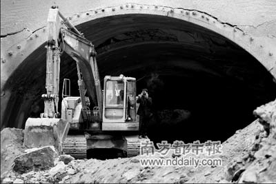 昨日下午,記者來到事發(fā)工地時,挖掘機(jī)正在清理塌方現(xiàn)場。據(jù)工地工人介紹,事故發(fā)生在凌晨3時左右,當(dāng)時有3名工人在隧道出口處施工,由于躲閃及時,只有兩名工人在事故中受傷。事故發(fā)生后,轄區(qū)派出所和街道辦工作人員曾到現(xiàn)場勘測險情。