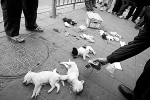 昨日上午10時50分許,在豐臺太平橋城管分隊執(zhí)法過程中,六里橋南一處地攤十余只待售貓狗等小動物遭故意摔踩斃命。城管隊員稱是攤主對抗執(zhí)法故意殺死動物,附近無照攤販們稱虐殺小動物是城管所為。事發(fā)后,一度有近300名群眾圍觀表達(dá)不滿,中國小動物保護(hù)協(xié)會會長蘆荻前往豐臺城管大隊了解事實真相。