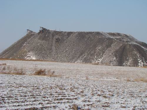 站在山坡的高處,可以看到七煤集團(tuán)向陽煤礦的很多礦井,這些礦井,都有一個相同的特點,就是都有數(shù)目不等的廢礦石(煤矸石)山,它們占用的就是村民賴以生存的承包田。