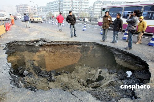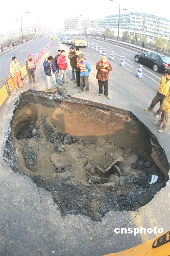 杭州路橋公司市政道橋養(yǎng)護處的工作人員介紹,他們是在凌晨一點左右發(fā)現情況的,當時橋面產生2-3平方米的塌陷。據調查,是由于路面長期受壓導致底下水管漏水,造成泥土流失,從而形成塌陷。