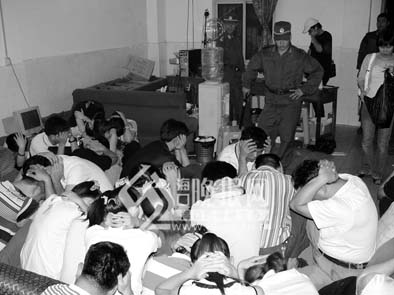 2007年7月24日零時(shí)許,當(dāng)公安干警來(lái)到賭場(chǎng)樓下時(shí),由于大門(mén)緊閉,東方市邊防支隊(duì)的10名身著便裝的民警想扮成賭徒混進(jìn)賭場(chǎng),但被戒備心強(qiáng)的看場(chǎng)子人員擋了出來(lái)。民警只好采取強(qiáng)攻的辦法。東方市邊防支隊(duì)指派兩名民警翻墻入院內(nèi)打開(kāi)大門(mén),并率先沖向賭場(chǎng)的三樓,其余民警也緊隨其后沖進(jìn)賭場(chǎng)。警方當(dāng)場(chǎng)抓獲參賭人員和為賭場(chǎng)服務(wù)的人員共61人,其中有賭場(chǎng)老板林軍、“看場(chǎng)”人員鄭永武、李道武和湯榮福,賭場(chǎng)的服務(wù)人員20人,參賭人員37人,繳獲人民幣100374元等。