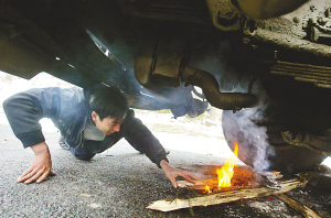 公路撒鹽汽車烤火