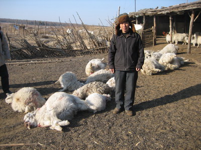 記者了解到,這次老宋損失的22只絨山羊有很多是已經(jīng)懷孕的母羊,保護(hù)局工作人員對死羊進(jìn)行了登記,并表示將按標(biāo)準(zhǔn)進(jìn)行補(bǔ)償。老宋昨天從死的大羊肚子里掏出了兩只未出生的小羊!翱尚奶哿耍@兩年羊絨剛賣上價(jià),一公斤達(dá)到400元左右,一只絨山羊好的也有600多元一只。”老宋說,一年羊產(chǎn)一次絨,在每年4月份,一只羊就能下半公斤絨。