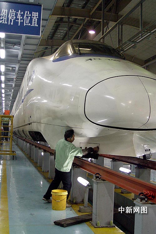 記者看到,在“CRH2—014A”動車前,十六名保潔工正對車體進(jìn)行“洗澡”清潔,機(jī)務(wù)段的師傅對車輪和制動裝置進(jìn)行“體檢”檢修,客運(yùn)段的姑娘們也開始對車廂進(jìn)行“美容”。