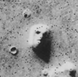 “火星之臉”照片上世紀(jì)70年代曾在科學(xué)界和科幻迷中引起了巨大的激動(dòng),因?yàn)椤盎鹦侵槨笨雌饋砭拖袷且活w抬頭仰望夜空的碩大人頭。不過后來拍到的新火星照片證實(shí),“火星之臉”只不過是一塊普通的火星巖石而已,只是由于特殊拍攝角度的光學(xué)錯(cuò)覺才形成了人臉形狀。