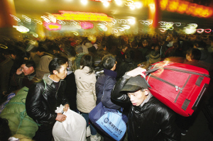 昨晚9時許,西站北廣場各進站口的旅客排起數條長龍,站內顯示屏顯示:值春運客流高峰,進出站臺旅客猛增,即日起停售站臺票,所有進站旅客憑當日車票于開車前4小時內進站候車。站內廣播多次播放通知,為保證旅客安全,站內地下二層開通臨時候車區(qū)。
