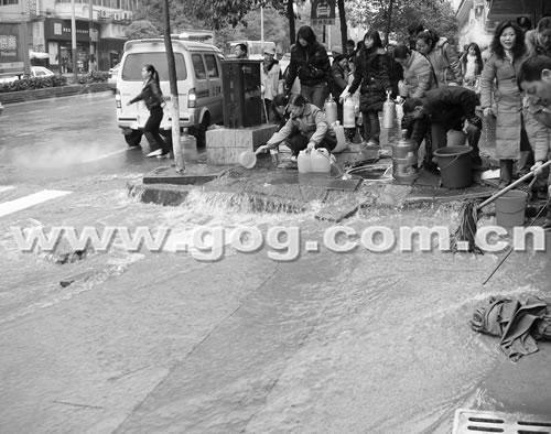 據(jù)遵義市供排水公司的負(fù)責(zé)人介紹,當(dāng)天上午8點(diǎn)左右,遵義市洗馬路的供水管道也被凍爆,和中華南路爆裂的這根供水管道都是城區(qū)的供水主管道。昨天下午1點(diǎn)至昨晚7點(diǎn)10分,豐樂小學(xué)旁、萬里路跳蚤市場(chǎng)等地先后還有6處供水管道爆裂,導(dǎo)致遵義賓館至高橋沿線,及中華南路一帶停水,大半個(gè)城市約有30多萬人沒水用。