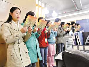1月30日早上9時,東莞市東城區(qū)一家寫字樓內傳出了朗朗的讀書聲。幾十名員工站在一起大聲誦讀《弟子規(guī)》。這一寫字樓里出現(xiàn)的奇特場景源于公司的一項規(guī)定:每天早上9時到9時15分,所有員工都要讀書15分鐘的國學經(jīng)典。