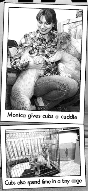 但2007年圣誕節(jié)早上,莫妮卡打開房門時目瞪口呆地發(fā)現(xiàn),這次陌生人遺棄在她家門口的動物,竟然是2頭剛出生的獅子!2只小獅崽被裝在一個小紙盒子中,渾身凍得瑟瑟發(fā)抖。它們可憐巴巴地望著莫妮卡,就如同2只溫順的小貓。莫妮卡頓生憐愛之心,立即將它們抱進(jìn)家中取暖。