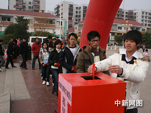 中新網(wǎng)韶關(guān)2月10日電 (馮昶 朱祖純 曾誠) 大年初三,廣東南雄市三影塔景區(qū)廣場內(nèi)人流涌動,一場聲勢浩大的“我與災(zāi)民心連心”募捐活動正在舉行,來自各條戰(zhàn)線的干部、企業(yè)等數(shù)千人紛紛伸出援助之手。引人注目的是一批當?shù)卦谕獯蚬さ那嗄耆恕W生和社團組織自發(fā)捐款,用真情表達對今年冰雪災(zāi)區(qū)民眾的一片愛心。