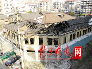 據(jù)離遺址僅一街之隔的一位賣水產(chǎn)的王勇先生反映,大火是在初一零點二十分開始的,大火燒得相當(dāng)厲害,由于該處建筑已經(jīng)封存,趕來的三輛消防車只進來了兩輛。一個多小時后大火才被撲滅。