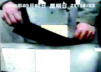 當(dāng)晚8時(shí)45分,中國銀行孝感分行保衛(wèi)部的值班人員,像往常一樣,在電視監(jiān)控中心觀察監(jiān)控錄像,突然發(fā)現(xiàn)一名穿著淺色夾克的年輕男子,走近ATM機(jī),他先掏出一張事先準(zhǔn)備好的紙片貼到ATM機(jī)上,隨后從衣服里抽出一張長方形的黑色塑料片,插入吐鈔口。