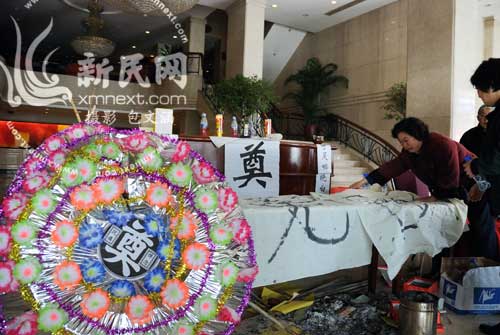 酒店大堂內(nèi)設(shè)置靈堂