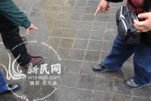 地上依舊可見死者的血跡 包文涵 攝