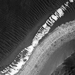據(jù)美國《科學》雜志在線報道,這幅由美國宇航局(NASA)的火星探測軌道飛行器(MRO)拍攝的圖像(如上圖),清楚地展示了火星上細微的分層沉積物,就好像地球湖泊中的湖水形成的沉積層一樣。