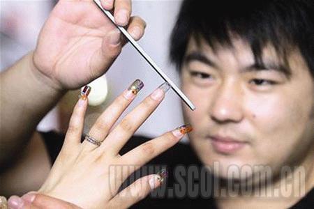 雖然男性美甲師在成都并不多見,然而就全國而言,男性美甲師卻并不新鮮:據(jù)業(yè)內(nèi)人士估計(jì),男性美甲師已占到從業(yè)人員的10%左右。而全國一年一度的“十大美甲師”評(píng)選中,每年都會(huì)有6—8名男美甲師入選。 (記者譚曉娟攝影華小峰)