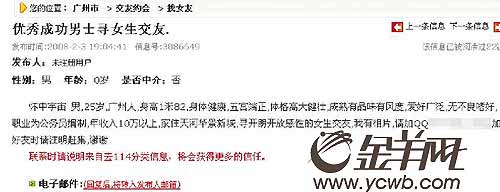 采訪時(shí),記者問阿丹,她的經(jīng)歷能不能歸為一夜情?她回答,如果不是以為真的在拍拖,自己絕不會(huì)和網(wǎng)友發(fā)生性關(guān)系。不甘受騙的她開始找呂××,這時(shí)她才發(fā)現(xiàn)自己對(duì)于呂××并不了解。對(duì)方只是說在某銀行的行政部門上班,辦公地點(diǎn)在天河,聯(lián)系的電話是159開頭的大眾卡。“我只有他穿著工服的照片,只知道他身高1.82米,是廣東人!