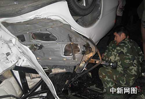 中新網杭州3月28日電(見習記者古其錚 通訊員吳平 裘紅霞)3月28日凌晨,浙江上三高速公路三門往上虞方向新昌服務區(qū)出口處,發(fā)生了一起2車相撞的交通事故,繼而引發(fā)后面8輛車相撞的連環(huán)交通事故,事故造成1名男子當場死亡,2名駕駛員被困,在新昌消防官兵的全力營救下,被困的2名司機成功脫險。